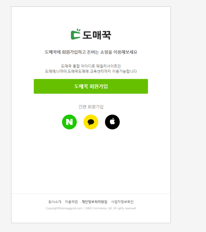 2. 간편회원가입을 하거나 초록색 도매꾹 회원가입을 클릭한다.