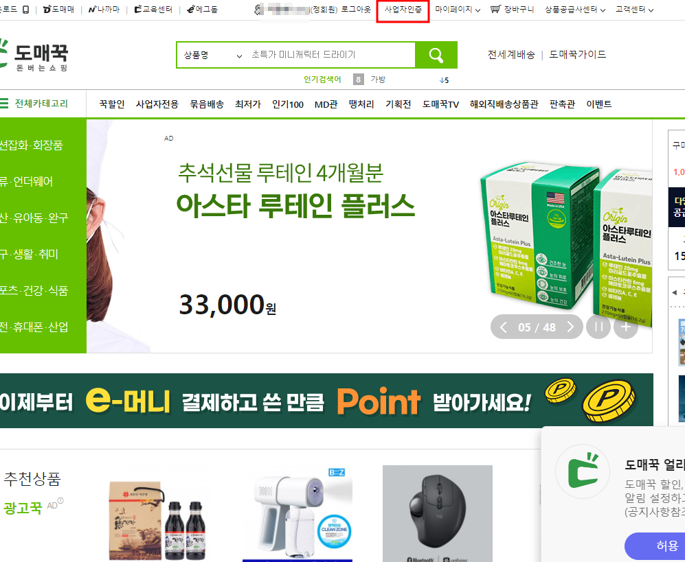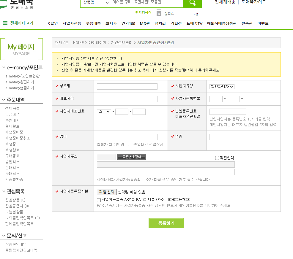 그리고 이제 도매꾹에 사업자회원으로 가입하려고 한다.