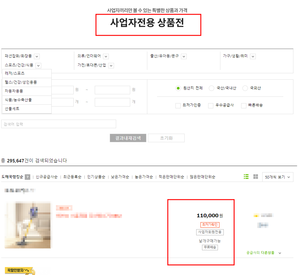 - 정회원일때는 볼수 없었던 사업자 전용 구매가격 확인 가능